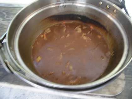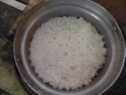 おいしいカレーの出来上がり。ごはんにはカニの穴もあり、ふっくらおいしく炊けました。