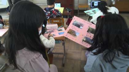 1つ生き物を決めて、画用紙に春夏秋冬でまとめました。