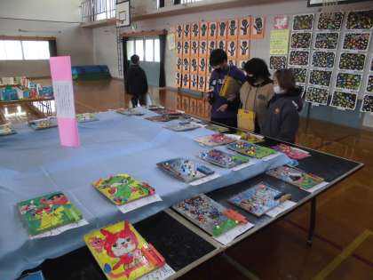 校内図工展を鑑賞しました。子どもたちは、全校のみんなが作った作品の素敵なところを探したり、鑑賞カードに工夫をしているところやすごいなあと思ったところなどを書きながらじっくりと作品の鑑賞をしていました。また、中学生の作品や向島藤の木小学校の作品、漫画イラストクラブの作品なども展示してあり驚きながら鑑賞していました。