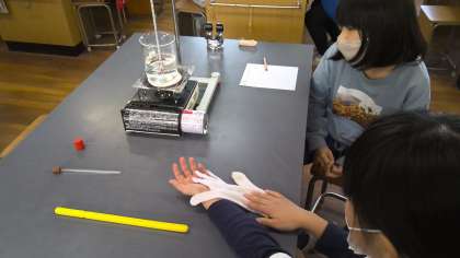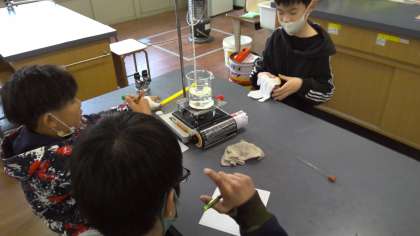 今日は、水を温め続けると何度まで上がるのかを、実験しました。