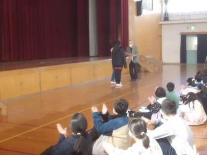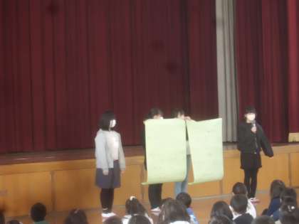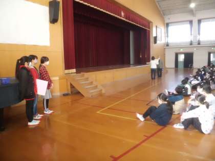 児童朝会では、給食委員会が発表。