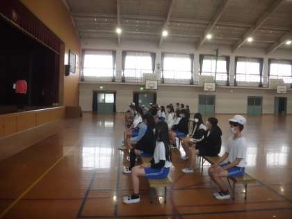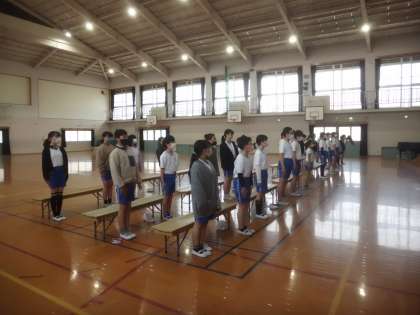 今日は、着席・起立・礼・入場の練習をしました。