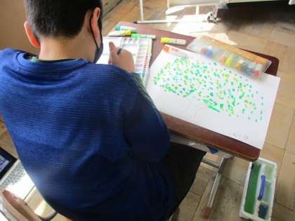 昨日撮った写真を見ながら、クスノキの絵をかきました。