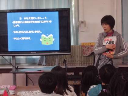 3年生は読書が大好きです。今日は図書館司書の先生と一緒に図書室の使い方や分類の仕方、図書の整理されているところなどの話をしていただきました。新しい読書ノートを使いながら、新鮮な気持ちで図書室で今年度初めての本を借りることができました。