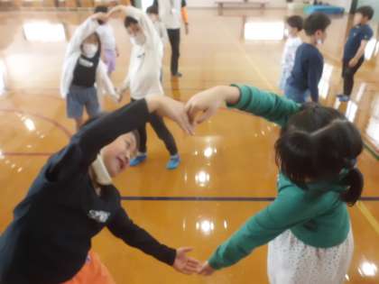 向島小学校を紹介する替え歌を、振り付けしながら♪