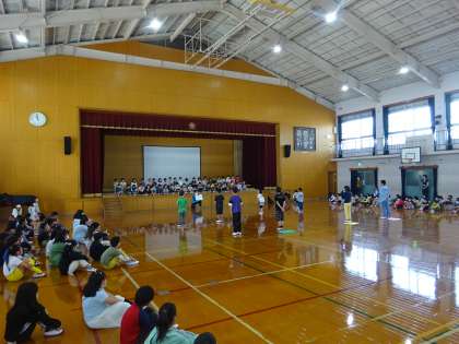 各学年から5分程度の「ダンス」「歌」「クイズ」などの出し物がありました。