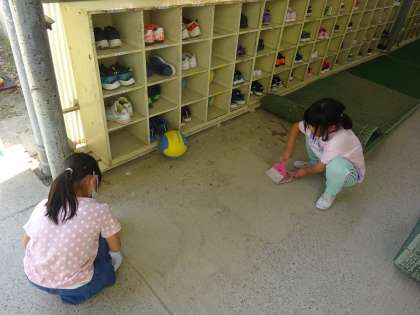 掃除の時間に歩いていると、いろんなところで掃除をかんばっている姿が!
