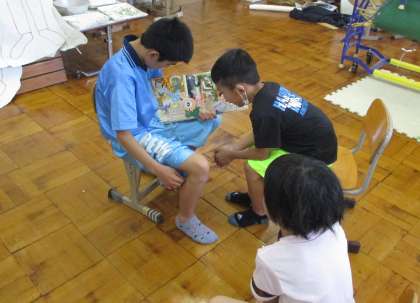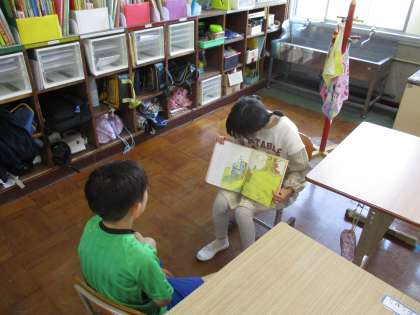 聞き手が見やすいように本を大きく広げる児童や、一人が本を開いてもう一人が文章を読むといった2人で役割分担する児童もいました。