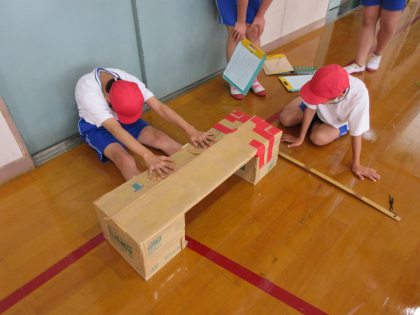 長座体前屈や立ち幅跳び,握力,反復横跳びなど計測をしています。
