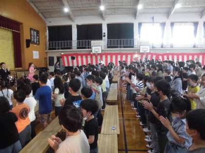 140周年記念式典の第2部は、アンサンブルレッネットの方々による楽しい音楽鑑賞教室がありました。子どもたちは、自然に音楽の楽しい世界を心から楽しんでいました。