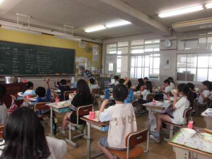 栄養職員の北山先生から赤・黄・緑の3つの栄養についての話を分かりやすくしていただきました。普段何気なく食べている食事についての栄養バランスやいろいろな食材について関心を持つことができたように思います。これからも食べることを大切にしていくことができればと思います。