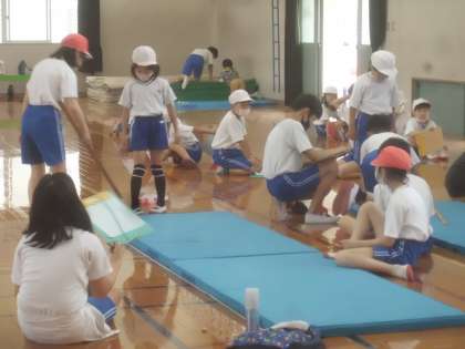 午前は6年生たちに教えてもらいながら、体力テスト。