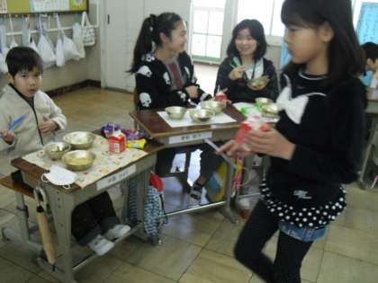 食べられることの喜びを感じながら感謝して,好き嫌いなく食べられるように3年生はがんばっています。