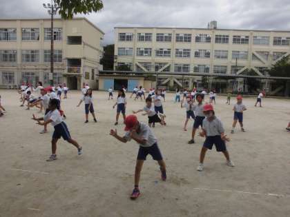 10月4日(水)の運動会に向けて、全校練習や運動場での団体演技の練習をしています。今週は、音楽だけで「ソーラン節」を踊るだけでなく、運動場での体形移動なども練習しました。みんなで力を合わせた演技ができるように頑張って踊っています。