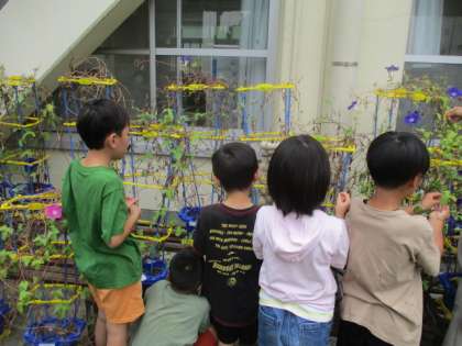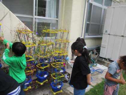 育ててきたあさがおでリースを作るに向けて