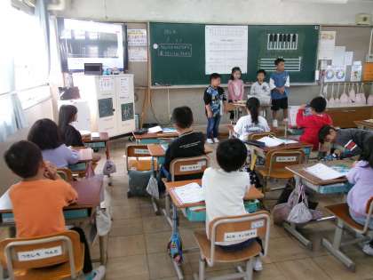 写真は、お客さん役と演奏者役に分かれて、聞いてどのように感じるか伝える、相手意識をもって演奏する、