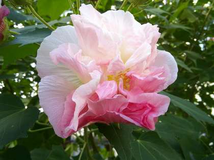 今年も酔芙蓉の花が中庭で咲き誇っています。朝は白く、昼、夕方にかけて少しずつピンク色に変化していきます。とてもすてきです。