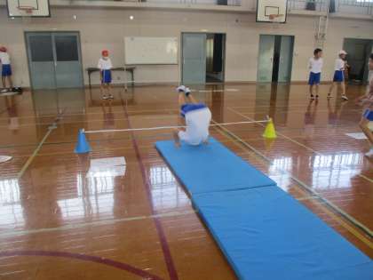 体育では、マット運動に取り組んでいます。