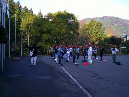 朝の集いです。ラジオ体操をしてスッキリしました。