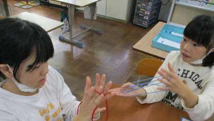 あやとりをすることで手先の器用さや見本の動きを観察する模倣力を養うことを目指しています。