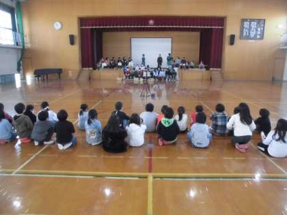 3年生と4年生が合同で学習発表会の練習をしました
