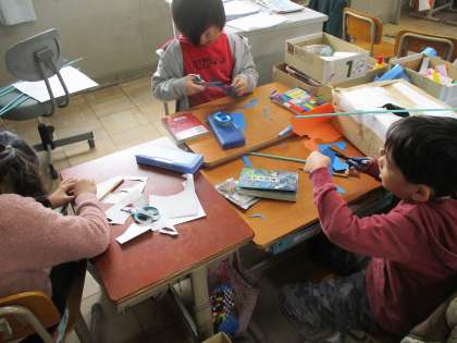 向島保育園のお友だちを招いて、1年生と『どんぐりフェスタ』を開くことになり、2年生は、生活科で作ったおもちゃやゲームを楽しんでもらおうと準備をしてきました。作って、試して、うまくいかないところは修正して、また遊んで試して・・・・と工夫して作りました。