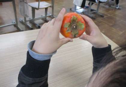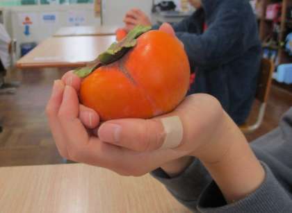 「柿ってよく見たらオレンジ色だけじゃなく、黄色や茶色もある」「この柿は固いけど、こっちの柿は柔らかい」など様々な発見がありました。