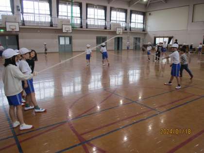 2年生も「8の字跳び」をするので、練習をしています。
