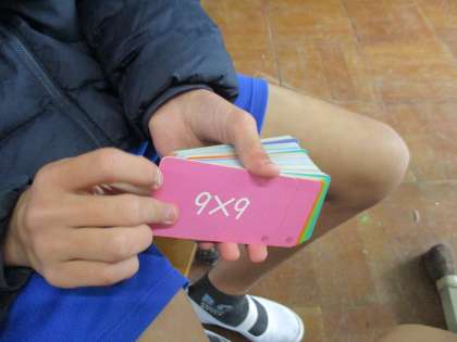グループ学習では友だち同士で九九の問題を出し合いました。答えを確認し合いながらゲーム感覚で活動できました。