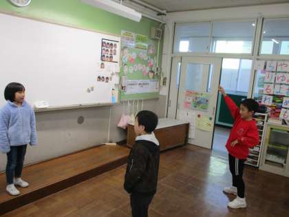 「命令です。笑顔になりましょう」「命令です。友だちのことを褒めましょう」など友だちと楽しみながら関わることができました。