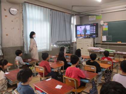 はじめての教室での児童朝会にわくわくしながら