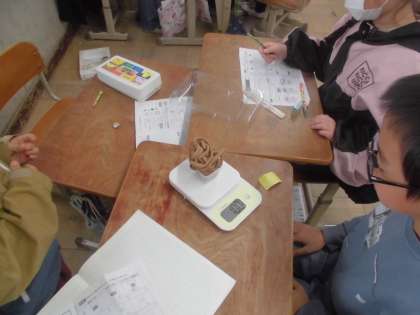 理科の学習では、「ものの重さ」を学習しています。今日の学習では、形を変えるとものの重さはどうなるのかについて実験をしました。ねんどの形を細長くしたり、小さく分けて集めたり、うすく延ばしたりしても重さは変わらないことを確かめることができました。