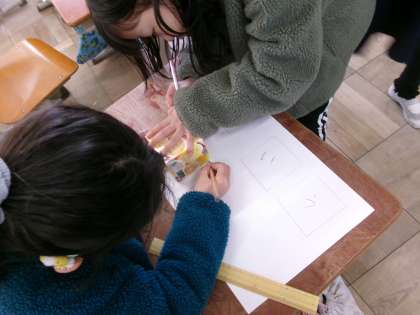 今日は、面の形と数をしらべるために、写し取って長さを測ったり数えたりしました。