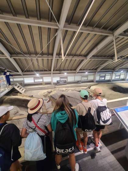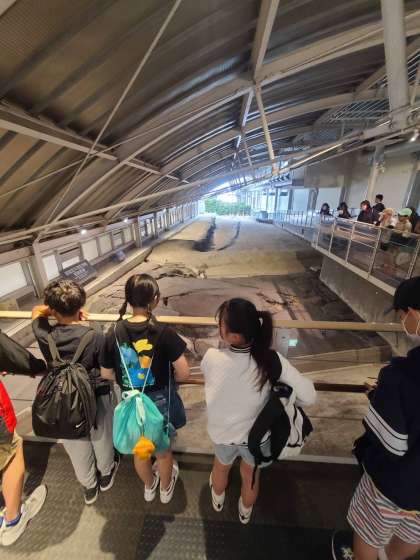 北淡震災記念公園に到着しました。阪神淡路大震災での様子を見学しました。断層が割れている様子を見たや震度7の地震を体験したり地震の怖さを学習したようです。