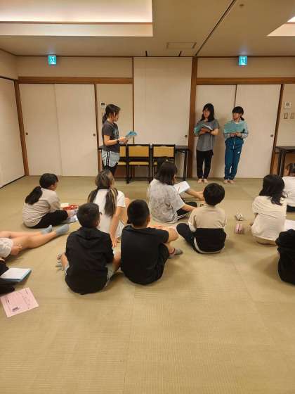 おはようございます。6年生は今日も全員元気です。昨日の夜のレクレーションと振り返りの様子です。