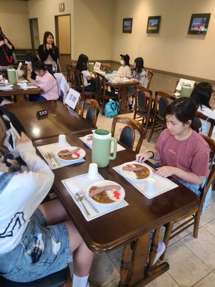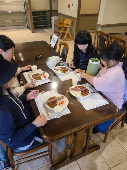 お昼ご飯はカレーです。大きなウィンナーが入っています。