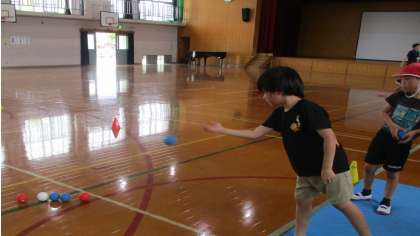 3.最近くすのき学級でハマっている『ボッチャ』と『モルック』を教職員と一緒にプレイ