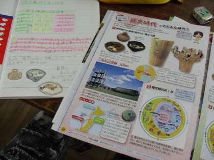 「縄文のむらから古墳のくにへ」の学習が始まりました。縄文のくらしを学びました。日本の歴史はここから築き上あげられたんだと話し合いました。