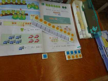 数図ブロックを使って、数の合計や数の違いを学んでいます。