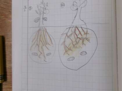 ホウセンカとひまわりの土の中はどのようになっているのか、予想した絵がこちら。