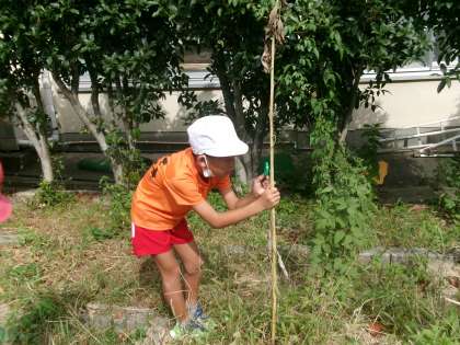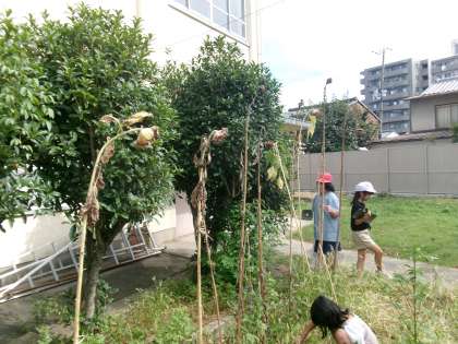 植物の一生という単元で、春に植えたホウセンカとひまわりの今の姿を観察しに行きました。