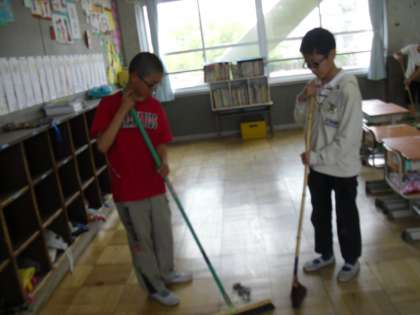 今週は,家庭訪問などがあり,簡単掃除のみでした。「先生,1年生とか掃除どうしてんのかなぁ。」と優しい6年生です。今日は,久しぶりに清掃時間があり,特別教室や1年生の教室も,隅々まできれいに掃除することができました。
