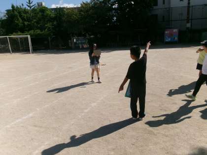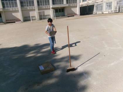 太陽の位置とかげの位置を指し、どんなところにかげができるかを考えます。