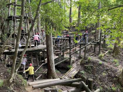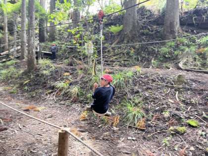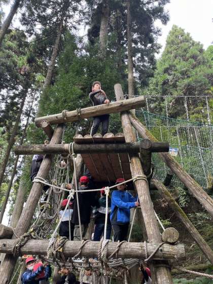 次は冒険の森でアスレチックで楽しんでいます。
