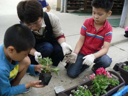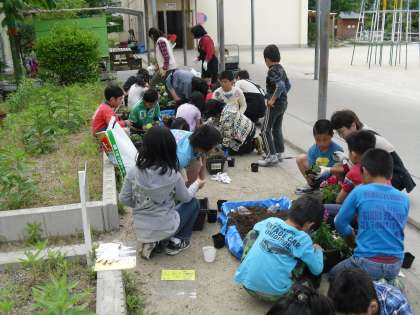その後、植え方の説明を聞いて、プランターに苗を植えていきました。