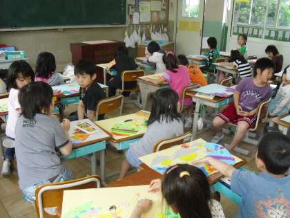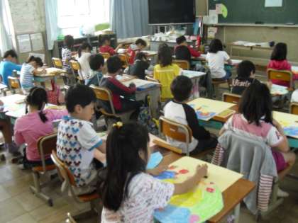 図工の時間に「ふしぎなたまごから」という題で絵を描きました。