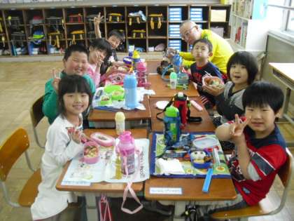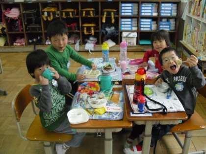 お弁当の時間には「遠足行けなかったね。でも、お弁当もう一回食べられるよ。」
