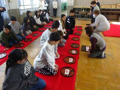 6年生では地域の方のご協力で茶道教室を実施しています。