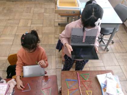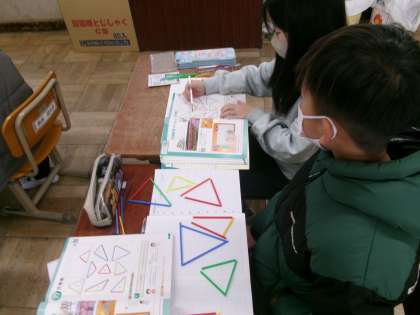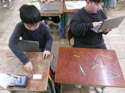 様々な三角形を作り、仲間分けしていきます。