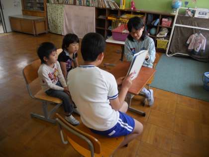 金曜日の読書タイムの時間に6年生のお兄さんお姉さんが、絵本の読み聞かせに来てくれました。「いじわるブッチー」という絵本をとても上手に読んでくれて、くすのきのこどもたちも集中して楽しんで聞いていました。これから毎週金曜日は6年生が2人来てくれて絵本を読んでくれます。とても楽しみです。